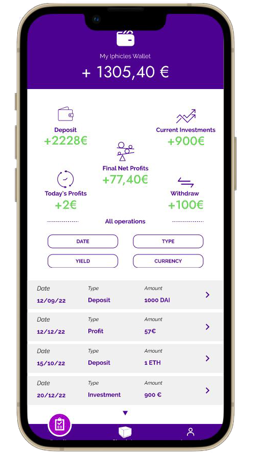 Iphiclès est une application développée pour permettre à ses utilisateurs de gérer un portefeuille d’investissements en crypto-monnaie.